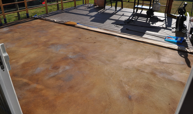 Stained and sealed concrete typically lasts 3–5 years before needing a recoat, depending on foot traffic and weather exposure. Properties in San Antonio, Schertz, and Boerne often enjoy long-lasting results with proper maintenance.